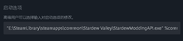 5.在Steam游戏库中找到星露谷物语右键点击属性在启动选项粘贴:"这里是StardewModdingAPI.exe的路径" %command%
